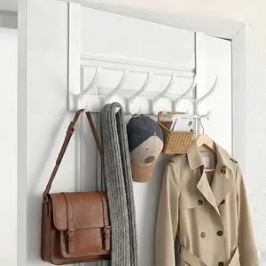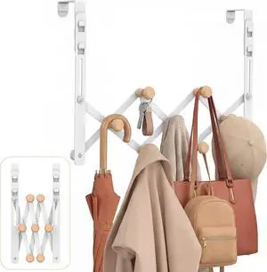 Estique Over The Door Coat Rack & Multi-Use Organizer for Coats Bags Hats & More White/Natural