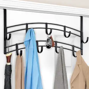 Over The Door Hooks Door Hanger Hooks for Hanging Over The Doors Towel Racks for Bathroom with 12 Coat Hook Coat Rack Dorm Essentials Bathroom Accessories1 Pack Black