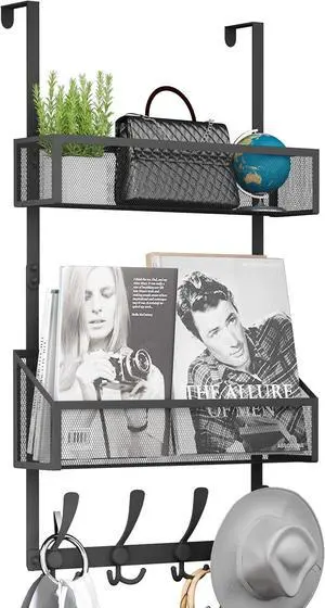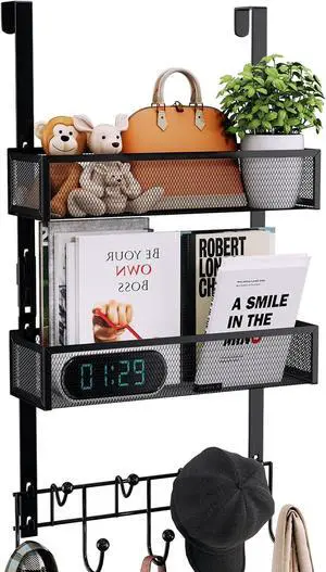 Over The Door Hooks Organizer Coat Rack Over The Door Storage Hanger Towel Rack Back of Door Storage Organizer for Bathroom Bedroom Kitchen Office (Black 3-Tier)