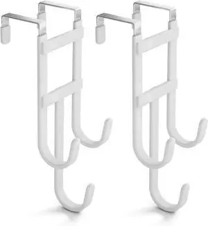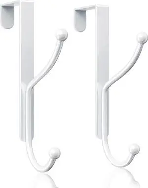 Over Door Hook 2-Pack Heavy Duty Door Hanger Fits Interior Doors 1.4 Inches Thick Organize Coats Hats Towels and Bags for Entryways Bathrooms Bedrooms and Kitchens White