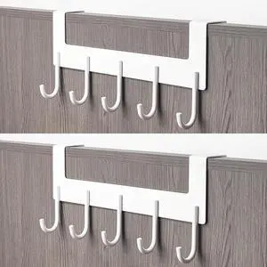 Over The Door Coat Rack Over The Door Towel Hanger Drying Rack Heavy Duty Aluminum Over The Door Towel Rack Hooks for Hanging Coat Bag Robe - 5 Hooks White Color 2 Pack