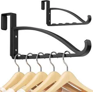 2 Pack Black Over The Door Coat Hanger Heavy Duty Metal Door Hanger Rack for Clothes Coats & Bags with Front Hook Fits Doors up to 0.91 Thick