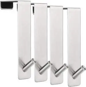 Over The Door Hooks (4 Pack) - Fits 1-3/8 Thin Doors - 304 Stainless Steel - 50Lbs Capacity - Tool-Free or Screw-in Mount