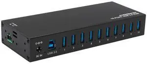 Kingwin Industrial USB 3.0 Hub 10-Port, Heavy-Duty Metal Mountable USB Hub with Power Adapter, 5Gbps SuperSpeed Powered USB Splitter for PC, Laptop, Mac, POS Systems & Factory Automation