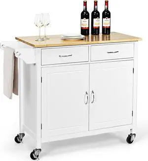 Rolling Bamboo Kitchen Island Cart Food Prep Trolley, with Towel Rack Drawers
