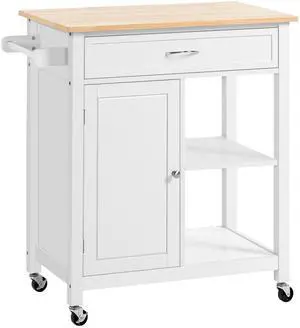 Kitchen Island Cart Rolling Trolley Cart with Drawer, Storage Cabinet & Towel Rack, White
