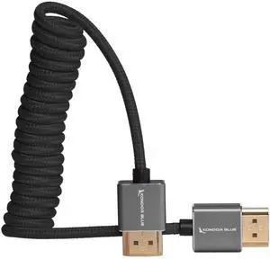 KONDOR BLUE ^^ Full HDMI 2.0 Type A Male to Male 12"- 24" Coiled Braided Cable ^^ 4K 60Hz 18Gbps, HDR, 3D, Reinforced ^^ for On-Camera Monitors & Recorders + More ^^ Blue