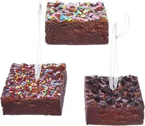 Chocolate Brownies with Sprinkles Christmas Holiday Ornaments Set of 3