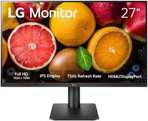 LG FHD (1920 x 1080) 27 Inch Computer Monitor, IPS, AMD FreeSync, 3-Side Borderless Design, Tilt/Height Adjustable Stand, 75Hz, 5ms, OnScreen Control, HDMI, DisplayPort, D-Sub, 27MP450-B, Black