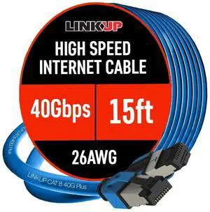 LINKUP 26AWG Cat 8 Ethernet Cable ^^ Flexible High-Speed Patch Cord ^^ 40Gbps 2GHz LAN Cable ^^ RJ45 connectors ^^ Use with Cat 5/ Cat 6/ Cat 7 ^^ Ideal for Gaming & Desktops
