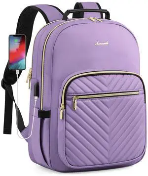 LOVEVOOK Laptop Backpack for Women, Travel Computer Work Bags with 17-inch Laptop Compartment, College School Student Bag Teen Backpacks For Girls, Outdoor Carry On Backpack Purse, Purple