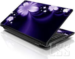 LSS 15 15.6 Inches Laptop Notebook Skin Sticker with 2 Wrist Pads - Reusable Cover Protector Vinyl Sticker Cover Decal Fits 13" - 16" - Purple Flower Pattern