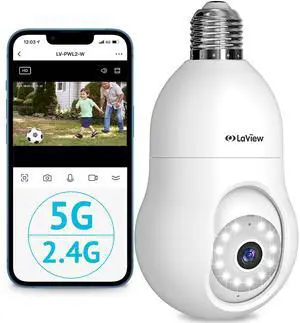 LaView 4MP Bulb Security Camera 5G& 2.4GHz WiFi, 3602K Security Cameras Wireless Outdoor Indoor Full Color Day and Night, Motion Detection, Audible Alarm, Easy Installation, Compatible with Alexa