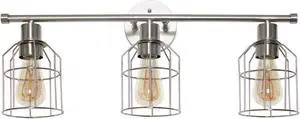 3 Light Industrial Wired Vanity Light, Brushed Nickel
