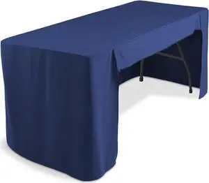 Lann's Linens Premium 6' Trade Show Table Cover - Open Back Fitted Tablecloth - Navy Blue