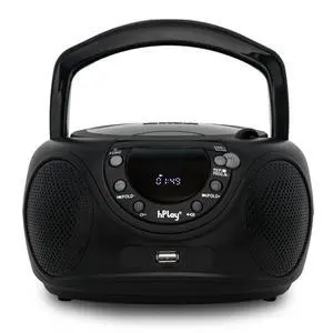 hPlay Portable CD Player Boombox, CD, CDR and MP3-CD, Digital FM Tuning Radio, Bluetooth, USB and Aux Line-in, Headphone Jack & Foldable Handle - Compact AC or Battery Powered Audio Player (Black)