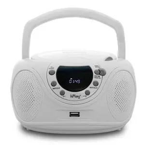hPlay P16 Portable CD Player Boombox with Bluetooth, FM Digital Radio, USB/MP3 Playback, Aux-in & Headphone Jack - AC/Battery Powered Stereo System (White)