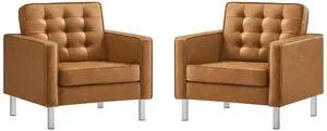 Loft Tufted Vegan Leather Armchairs Set of 2 by Modway