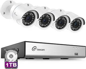 Loocam Security Camera System 1080p Indoor Outdoor, AI Human Vehicle Detection, 8CH 4 Cams H.265+ DVR with 1TB HDD 24/7 Recording Security Camera Wired, Night Vision, Remote Access, App Email Alert