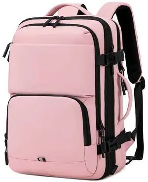 BAGOK Carry On Travel Backpack, 35L-40L Expandable Extra Large Airline Approved,Lightweight Daypack for Men and WomenPink
