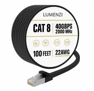 Lumenzi Cat8 Flat Ethernet Cable 100ft, 1 Pc Pack, 40Gbps 2000MHz Network Patch Cord, S/FTP Shielded LAN Cable with RJ45 Connectors, for Gaming, Router, Modem, Laptop