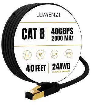 Cat8 Flat Ethernet Cable 1ft,5ft,10ft,25ft,40ft,50ft,100ft,500ft,1000ft, 1 Pc Pack, 40Gbps 2000MHz Network Patch Cord, S/FTP Shielded LAN Cable