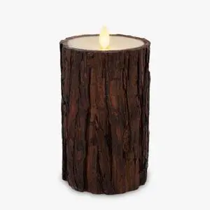 Luminara Real Bark Flameless LED Candle, Ivory 3.5" x 6.5", Moving Flame Battery