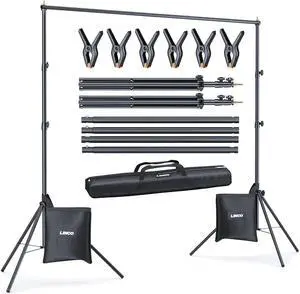 Lincostore Backdrop Stand for Parties Kit 10x7 ft Adjustable Back Drop Photography Studio Photo Background Support System with Clamps Sand Bag Carrying Bag 4172 4174 (10x7 ft)