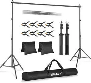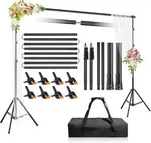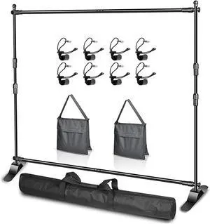 Backdrop Stand 10×8ft (W×H) Adjustable Backdrop Support Ground Kit Photography Photo Shoot Backdrop Stand for Parties with Sandbags Spring Clips Carrying Bag