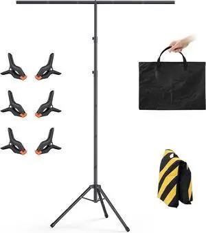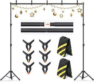 T-Shape Backdrop Stand 8x5.3FT Height and Width Adjustable Background Stand for Parties Green Screen Holder with 6 Spring Clamps