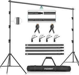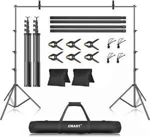 10 x 10Ft Photo Video Studio Heavy Duty Adjustable Muslin Backdrop Stand Background Support System Kit for Photography with Carrying Bag4 Pcs Spring Clamps