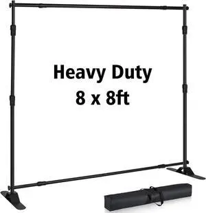 Photo Backdrop Stand - Heavy Duty Banner Holder Adjustable Photography Poster Stand - Height Up to 8x8 ft for Trade Show Photo Booth Parties Wedding Birthday Photoshoot Background