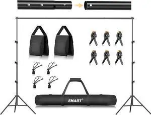 Backdrop Stand 10×8ft (W×H) Adjustable Backdrop Support Ground Kit Photography Photo Shoot Backdrop Stand for Parties with Sandbags Spring Clips Carrying Bag