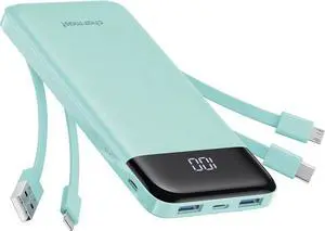 Charmast Portable Charger with Built in Cables Power Bank with Cords Wires Slim 10000mAh Travel Battery Pack 6 Outputs 3 Inputs 3A Fast Charging for Google Pixel Moto iPhone iPad