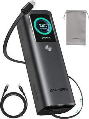 Laptop Power Bank 165W 20 000mAh Retractable Cables Aluminum Alloy Unibody Portable Charger Power Bank Battery Bank for MacBook Pro/Air/iPhone 17/iPad Pro/S25 Ultra//(TSA-Approved)