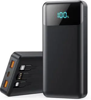 20000mAh Portable Charger with Built in Cables 22.5W Travel Power Bank Fast Charging USB C Cell Phone Battery Pack for iPhone 16/15/14/13/12/11 Series iPad Android Tablet