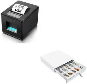MUNBYN 80mm USB Receipt Printer and White Cash Drawer, 16" Heavy Duty Cash Register for Point of Sale (POS) System