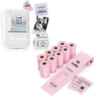 MUNBYN FM226 2 Inch Label Maker with 1 Roll 50x30mm White Label + 10 Rolls Receipt Paper