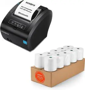 MUNBYN 58mm Mini Wireless Bluetooth Receipt Printer and 2 1/4 x 50ft Thermal Paper (20 Rolls), BPA Free 58mm Receipt Paper