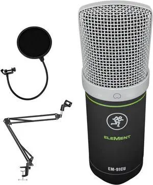 Mackie EM-91CU USB Condenser Microphone Bundle with Mic Boom Scissor Arm Stand & Pop Filter