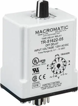 MACROMATIC TR-51622-10 Single Function Time Delay Relay, Octal, Off Delay, 1