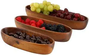 MegaChef 3 Piece Acacia Wood Oval Serving Bowls in Assorted Sizes