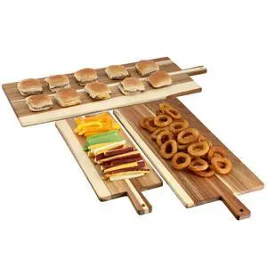 MegaChef 3 Piece Acacia Wood Charcuterie Cheese Board Set with Handles