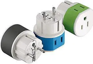 Germany, France, Schuko Power Plug Adapter by OREI with 2 USA Inputs - Travel 3 Pack- Type E/F (US-9) Safe Grounded Use with Cell Phones, Laptop, Camera Chargers, CPAP, and More