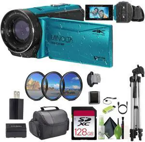 Minolta MN4K300WP 4K Ultra HD / 56 MP Waterproof Camcorder - Blue - Bundle
