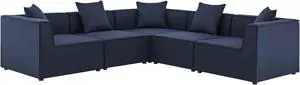 Saybrook Outdoor Patio Upholstered 5-Piece Sectional Sofa Navy