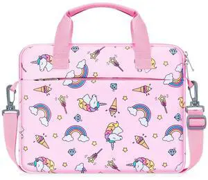 MoKo 10-12.5 Inch Kids Tablet Sleeve Carrying Case for Fire HD 10 13th/11th Gen, Fire HD 8/7 Kids 2022, Tablet Bag with Shoulder Strap for 10/10.1 Inch Android 12/13, Rainbow & Unicorn (Lilac)
