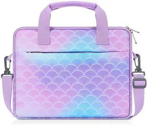 MoKo 10-12.5 Inch Kids Tablet Sleeve Carrying Case for Fire HD 10 13th/11th Gen, Fire HD 8/7 Kids 2022, Tablet Bag with Shoulder Strap for 10/10.1" Android 12/13, Rainbow & Unicorn, Mermaid-Purple