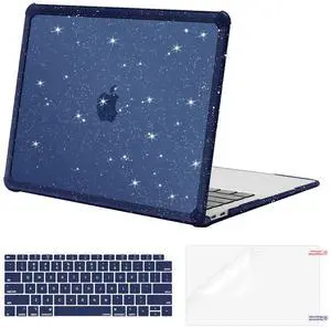 MOSISO Compatible with MacBook Air 13 inch Case 2022-2018 Release A2337 M1 A2179 A1932, Crack-Resistant Heavy Duty Glitter Plastic Hard Case with TPU Bumper&Keyboard Cover&Screen Film, Navy Blue