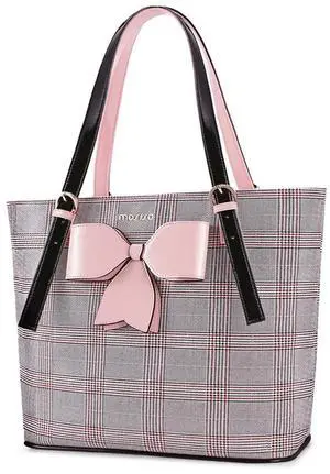 MOSISO Laptop Bag for Women Compatible with MacBook Air 15 inch M2 A2941 2023/Pro 16 inch M3 M2 M1 2023-2019, PU Leather Large Capacity Travel Briefcase with Bowknot Grid MO-GID001GYPK